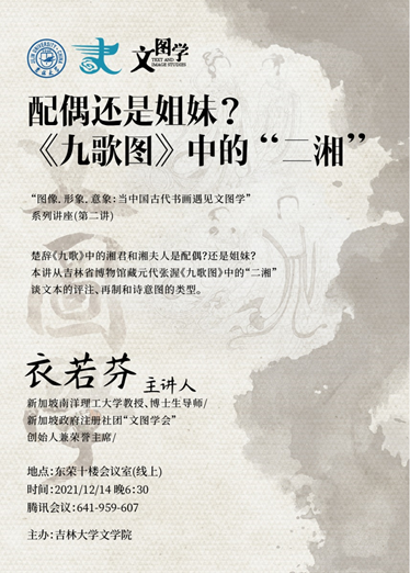 楚辞《九歌》中的湘君和湘夫人是配偶?还是姐妹?本讲从吉林省博物院藏元代张渥《九歌图》中的“二湘”谈文本的评注、再制和诗意图的类型。