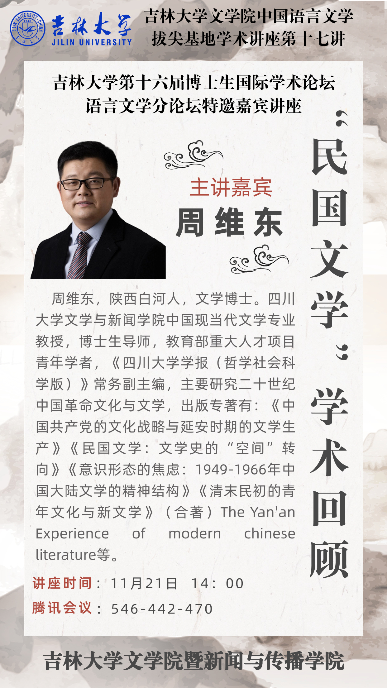 吉林大学第十六届博士生国际学术论坛语言文学分论坛特邀嘉宾讲座