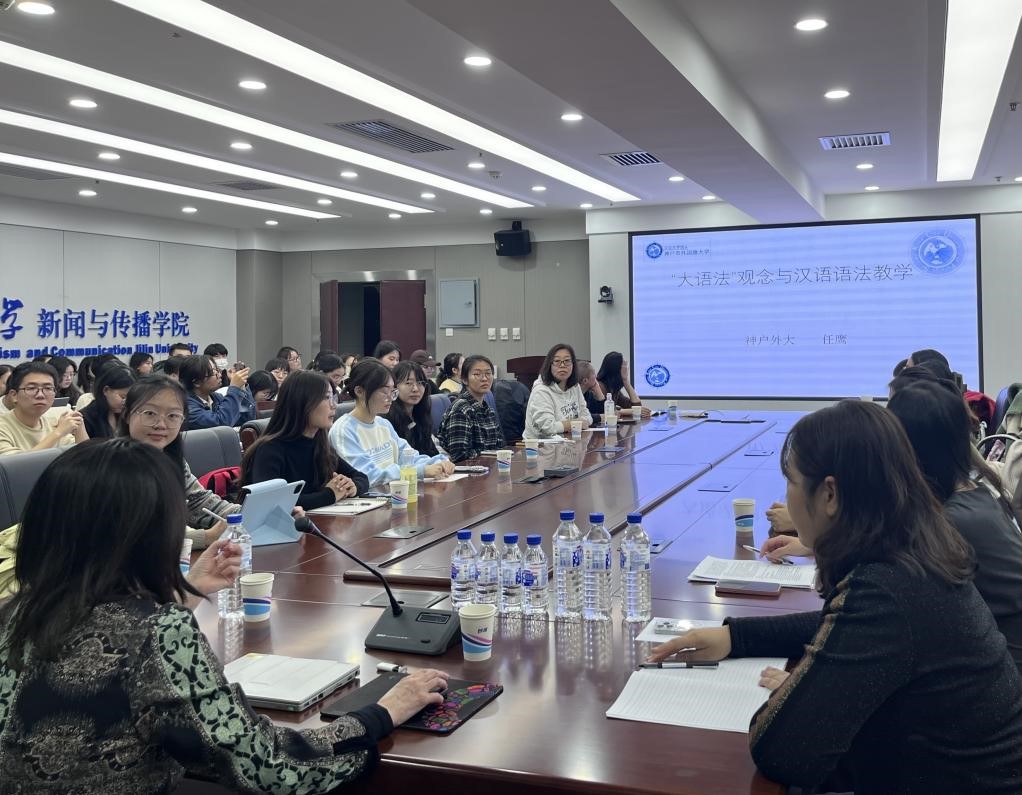 2024年11月8日,日本神户市外国语大学中文系教授、博士生导师任鹰教授在东荣大厦十楼会议室为我院师生带来题为《“大语法”观念与汉语语法教学》的学术讲座。讲座由周莉教授主持,由刘艳茹教授进行总结评议,米兰(中国)一站式服务平台的王倩老师、王岩老师、李剑影老师和张苗苗老师等师生共同参加讲座。