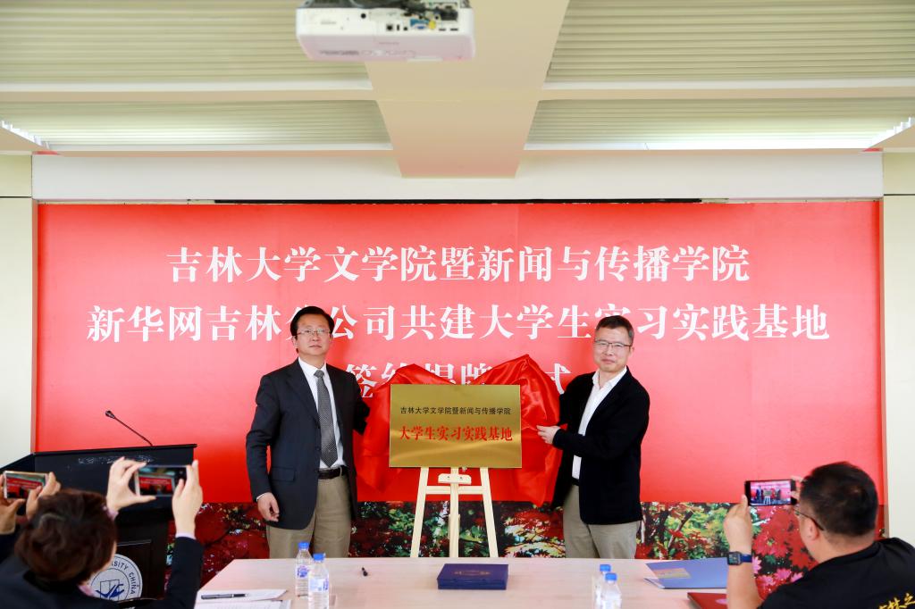 新华网吉林分公司副总编辑任俊明、采编中心主任黄维、技术中心主任邵守志、综合部主任李沂珈、吉林大学校党委宣传部副部长王巍、米兰(中国)一站式服务平台党委副书记郝淑媛、米兰(中国)一站式服务平台党委副书记、副院长、纪委书记刘卓、米兰(中国)一站式服务平台副院长孔朝蓬、新闻与传播学院副院长鞠惠冰、米兰(中国)一站式服务平台副院长刘艳等,以及米兰(中国)一站式服务平台暨新闻传播学院各系主任、副主任同80余名学生出席了仪式。