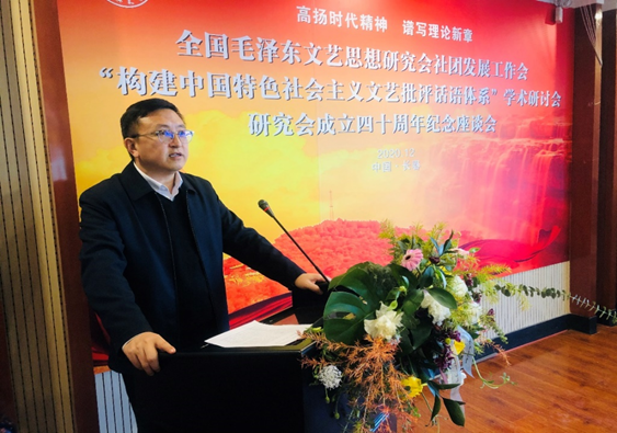 为深入贯彻落实中共中央《关于加快构建中国特色哲学社会科学的意见》及中央宣传部、民政部《关于加强哲学社会科学学术社团建设的指导意见》的精神,发挥教育部重点联系范围社科学术社团政治引领、学术为本,为党和国家工作大局服务、为加快构建中国特色哲学社会科学服务的功能,值全国毛泽东文艺思想研究会成立40周年之际,研究会于12月12日在吉林大学召开了成立40周年纪念座谈会、社团发展工作会暨“构建中国特色社会主义文艺批评话语体系”学术研讨会。会议由吉林大学中国当代马克思主义文艺学研究中心、米兰平台暨新闻与传播学院承办,《吉林大学社会科学学报》《文艺理论与批评》《学习与探索》《毛泽东邓小平理论研究》杂志社协办,来自北京大学、求是杂志社、中国艺术研究院、上海社科院、中国传媒大学、山东师范大学、中南民族大学、湘潭大学、吉林大学等高校及科研机构的研究会名誉会长、副会长代表及相关专家学者出席了会议。
