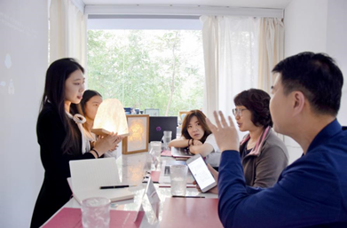 郝淑媛教授对学院的学科建设与发展等情况进行介绍。随后,懂你文化创始人车东妮介绍了公司在文创开发、沉浸式体验、活动策划等领域的成绩,并展示了懂你文化文创样品。同时,双方就共建大学生实习实践基地进行探讨,懂你文化将针对短视频编辑策划、广告设计、沉浸式剧本等内容为米兰(中国)一站式服务平台暨新闻与传播学院提供大学生实习实践就业机会。