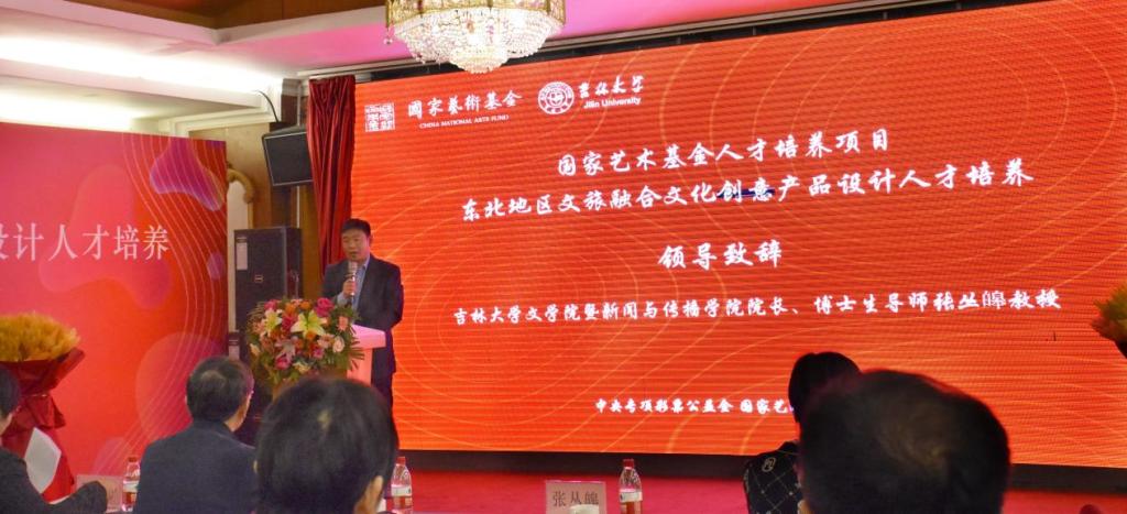 12月21日,周大勇教授主持的国家艺术基金资助项目《东北地区文旅融合文化创意产品设计米兰(中国)一站式服务平台》的启动仪式在海航紫荆花饭店举行,省内相关单位的领导、专家学者及学员40余人出席启动仪式。该项目主要为东北地区培养高端文创人才,促进东北文化振兴。吉林省文化和旅游厅艺术处王兆勇副处长出席了启动仪式,吉林大学社会科学处隋祎宁副处长和米兰(中国)一站式服务平台暨新闻与传播学院院长张丛皞教授在启动仪式上致辞。仪式由吉林省传播学会副会长、米兰平台暨新闻与传播学院副院长、博士生导师刘鸣筝教授主持。