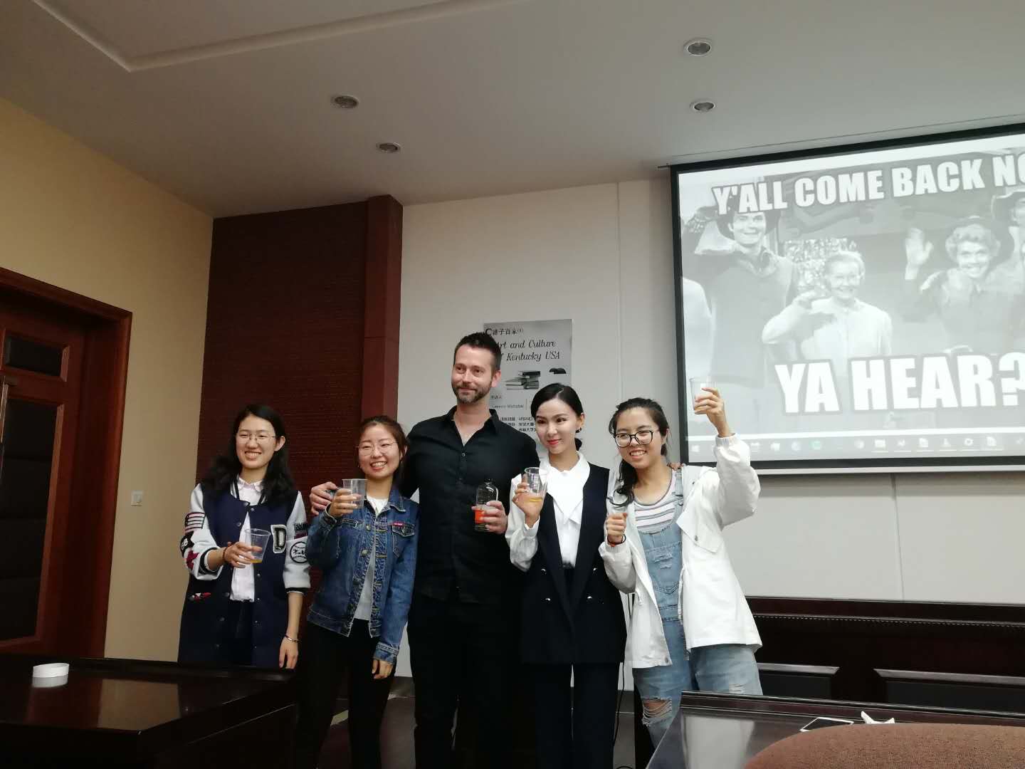 在交流问答环节,同学们积极与教授沟通,表现出了对肯塔基当地文化的兴趣,并认真提出自己的问题与困惑。Lennon教授根据自己所知,认真解答。现场气氛轻松活跃,会后也得到老师们的一致肯定。