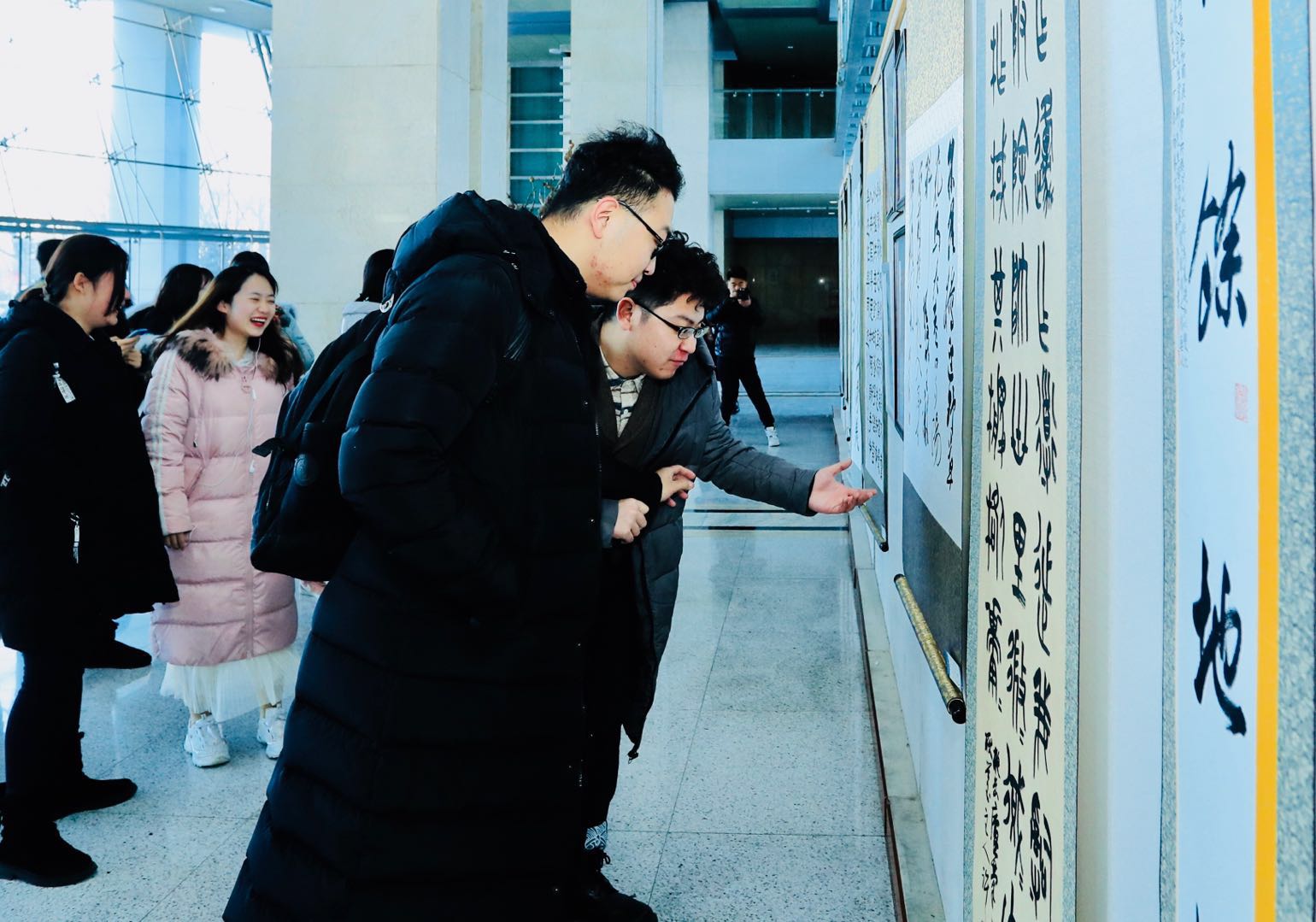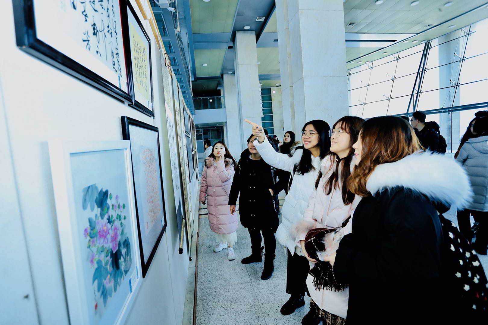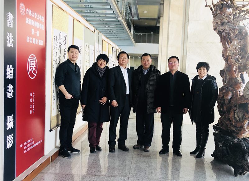 本网消息 为了展示我国书画文化和现代摄影的魅力,丰富师生的业余生活,活跃艺术创作,促进校园文化和精神文明建设,12月25日,米兰(中国)一站式服务平台暨新闻与传播学院在东荣大厦一楼大厅举办了该院第一届书法、绘画、摄影展。开展当天,吉林大学工会主席陆志东、副主席任波,米兰(中国)一站式服务平台院长徐正考、党委书记康永刚,米兰(中国)一站式服务平台副院长、工会主席刘艳、副主席田鹏等领导及师生代表一同观看了展览。