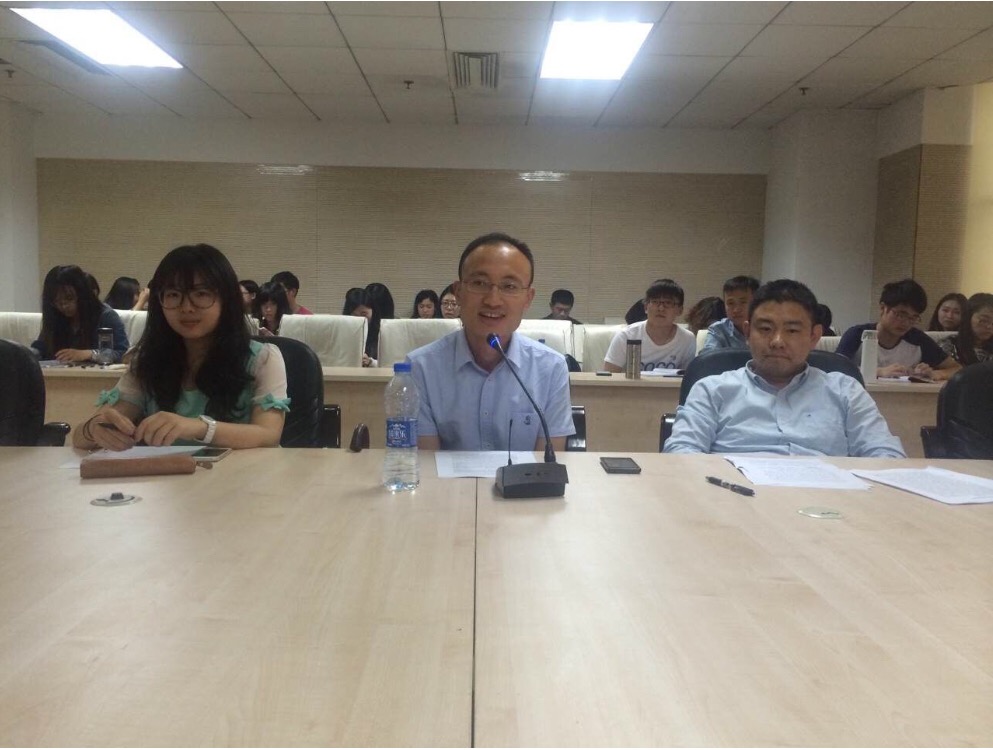 张丛皞老师于2004年入刘中树先生门下攻读硕士、博士学位,毕业后留校在中国现当代文学教研室任教。林栋同学曾筹划和组织刘中树先生“我的治学之道”系列讲座,与先生有过许多接触。 林栋首先分享了刘中树先生主讲“我的治学之道”系列讲座期间的感人事迹,呈现了刘中树先生对待学生的责任心和奉献意识,“只要是学生来求教,不管大事小事,刘老师都特别热心帮助学生,这点让我很感动,也很受触动”,林栋说。 随后,张老师介绍了刘先生从随家革命、到沈阳和长春求学,再到留校任教长期从事中文学科教学科研和高校管理工作的人生选择和职业道路,以及他多年来在教书育人和学术研究上取得突出成绩,在学科发展与团队建设上做出的重要贡献,并谈及了自己师从刘中树先生10多年来的诸多收获与长进。张老师还结合着具体事例从四个方面谈及了刘中树先生的作为一名优秀的老党员的可贵精神素质:坚定的政治信仰、高尚的道德修养、高度的职业精神、领军带头作用。最后,张老师希望在场的党员和入党积极分子能够以刘中树先生为榜样,提高思想道德修养,做好本职工作,以党员身份严格要求自己,在学习和生活中发挥先锋模范作用。