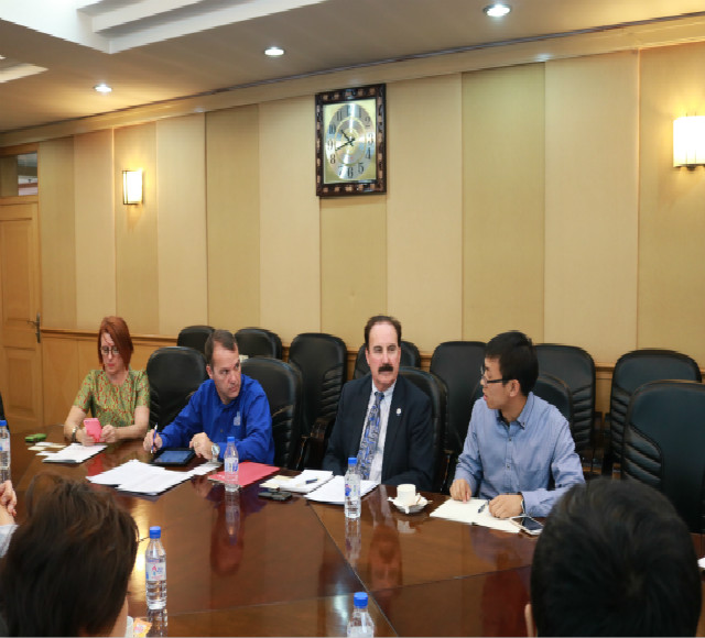 2015年10月26日上午,美国肯塔基大学文理学院院长Mark Kornbluh教授一行与米兰(中国)一站式服务平台在友谊会馆第一会议室举行了座谈。米兰(中国)一站式服务平台院长徐正考教授,副院长孔朝蓬教授,国际语言学院院长岳辉教授及各专业教师出席本次会议。