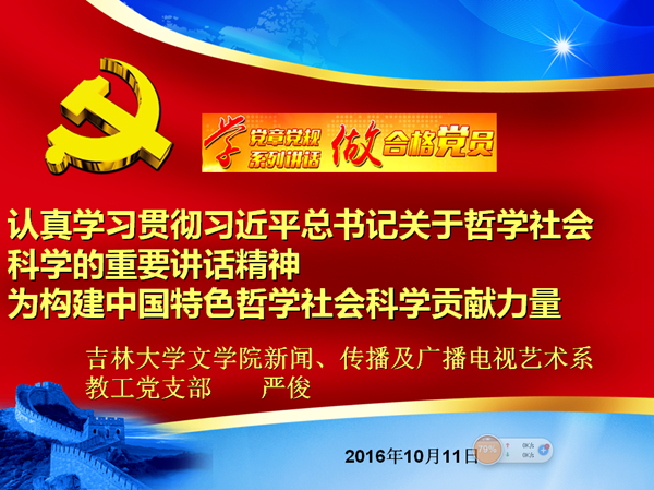 支部书记严俊在上党课时,全面讲解了《习近平总书记在哲学社会科学工作座谈会上的讲话》的主要内容,并且谈了自己的学习体会。他认为,习近平总书记在哲学社会科学工作座谈会上的重要讲话,是新形势下繁荣发展我国哲学社会科学事业的纲领性文献,为新时期高校哲学社会科学工作指明了方向。严俊就学习、贯彻习近平讲话精神提出了具体要求:一、将深入学习、贯彻习近平总书记关于哲学社会科学的重要讲话作为“两学一做”学习教育的重要内容和今后长期的政治任务,深入学习,认真领会,学深学透,真学真做。二、要自觉把马克思主义的立场、观点、方法贯彻到科研和教学工作当中,大力推进新闻传播学和广播电视艺术学学科体系与教材体系的创新,树立为人民做学问的理想,深化教育教学改革,全面落实立德树人的根本任务。三、以服务党和政府的决策为宗旨,以人民为中心,坚持问题导向,以改革创新为动力,述学立论,建言献策,发挥好哲学社会科学服务社会实践、米兰(中国)一站式服务平台、舆论引导等方面的重要功能。