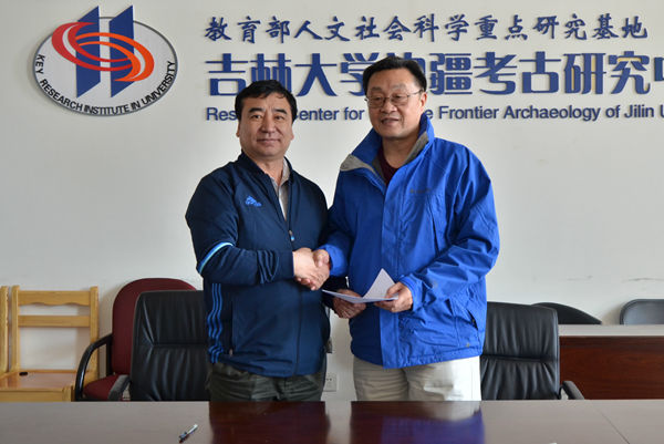 2017年4月21日,蒙古族源科学研究中心主任、呼伦贝尔民族博物院院长白劲松一行6人到吉林大学调研,吉林大学边疆考古研究中心主任朱泓、副主任王立新、刘艳出席仪式,双方共同签署了战略合作协议。