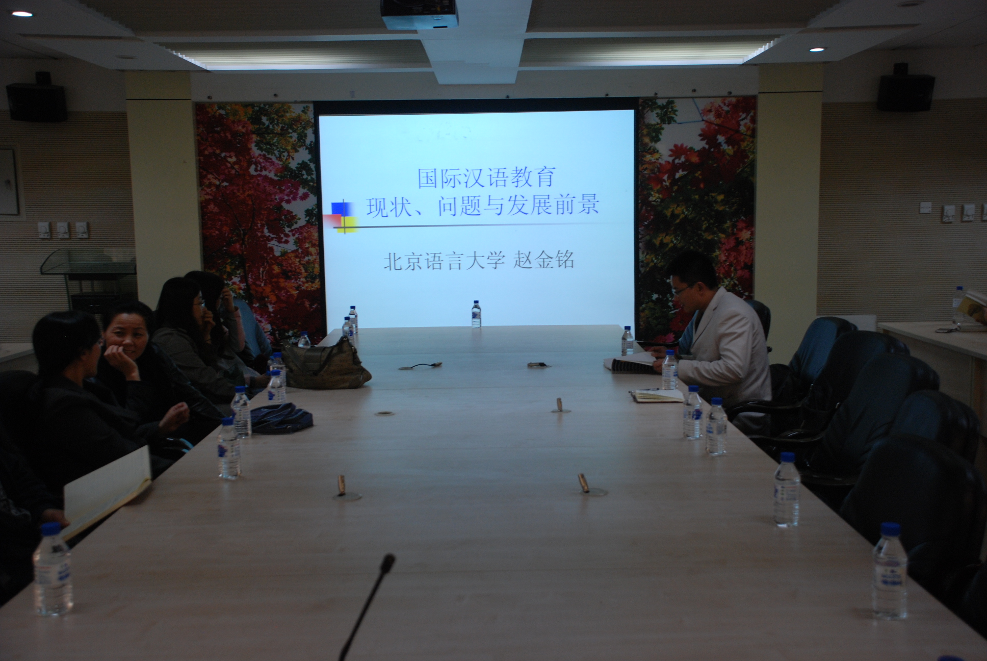 2014年4月23日18:00在东荣大厦米兰(中国)一站式服务平台10楼会议室,著名对外汉语教育专家、北京语言大学教授,博士生导师赵金铭教授,为我院师生做了题为《汉语国际教育的现状、问题和发展前景》的学术讲座。在吕明臣教授的主持下,米兰(中国)一站式服务平台200多名师生聆听了赵金铭教授的精彩讲座。