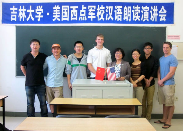 会上,美国西点军校汉语项目班的学员们朗读了《中国古代的媒婆》、《汉字的构造及演变》、《炎黄子孙》等篇章,字正腔圆的发音和流利的汉语表达,充分展示了他们在来吉林大学一个多月来汉语学习的进步。
