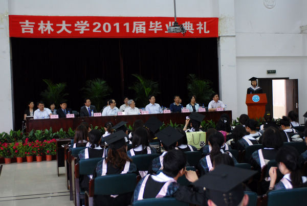 典礼首先由米兰(中国)一站式服务平台教学委员会主任赵英兰教授宣读米兰(中国)一站式服务平台关于授予2011届326名毕业生学士学位的决定。吉林大学哲学社会科学资深教授刘中树教授、吉林大学中国语言文学学位分委员会主席徐正考教授为获得文学学士学位的毕业生授予学位;吉林大学哲学社会科学资深教授林沄教授、吉林大学历史学学位分委员会主席朱泓教授为获得历史学学士学位的毕业生授予学位。