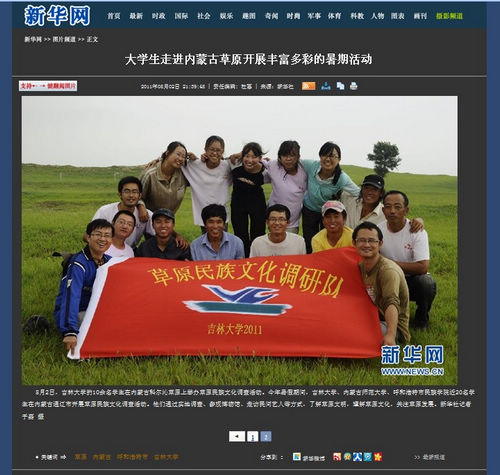 新华网专门为本次调研活动作了题为《大学生走进内蒙古草原开展丰富多彩的暑期活动》的报道,并相继被中国台湾网,内蒙古人民政府网、中国日报网、红山晚报等近二十余家媒体转载报道,取得了良好的社会效果。