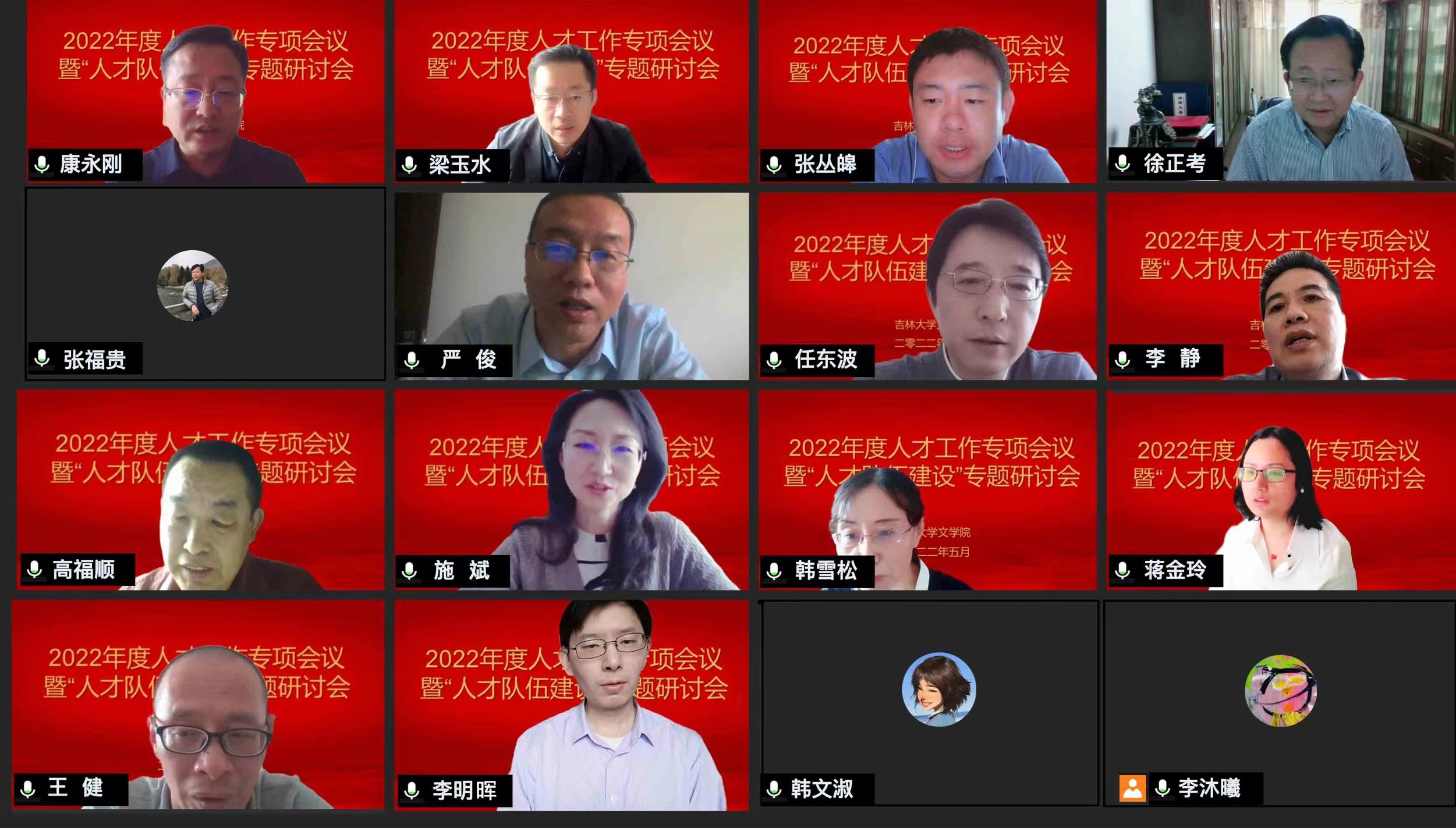 为深入贯彻落实习近平总书记在中央人才工作会议上的重要讲话精神,落实学校人事人才工作会议精神,按照学校《关于组织开展人才队伍建设大讨论的通知》要求,5月30日下午,米兰(中国)一站式服务平台组织召开了2022年度人才工作专项会议暨“人才队伍建设”专题研讨会。吉林大学哲学社会科学资深教授张福贵教授,学院党政领导班子成员,学术委员会主任,教学委员会主任,学位评定分委员会主任,各系(部)主任,国家级、省部级优秀人才,“匡亚明学者”特聘教授,“培英工程计划”、“励新优秀青年教师培养计划”、“青年学者讲习班”、“鼎新学者”支持计划入选者、教师代表及各职能科室主任出席了会议。会议由学院党委书记康永刚主持。