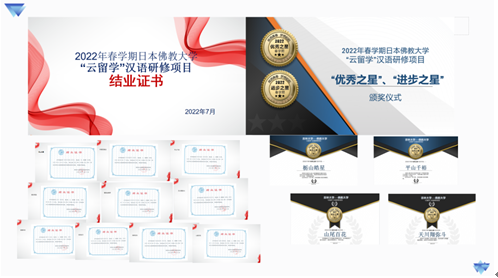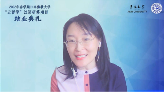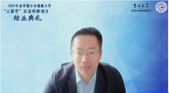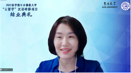 北京时间2022年7月15日上午8点30分,吉林大学国际语言学院“2022年春学期日本佛教大学‘云留学’汉语研修项目”结业典礼在线上顺利举行。吉林大学国际语言学院李冬梅院长、米兰平台梁玉水副院长、项目班任课教师团队、佛教大学文学部学部长鹈饲光昌教授、日方教师团队和全体项目班同学出席了本次活动。