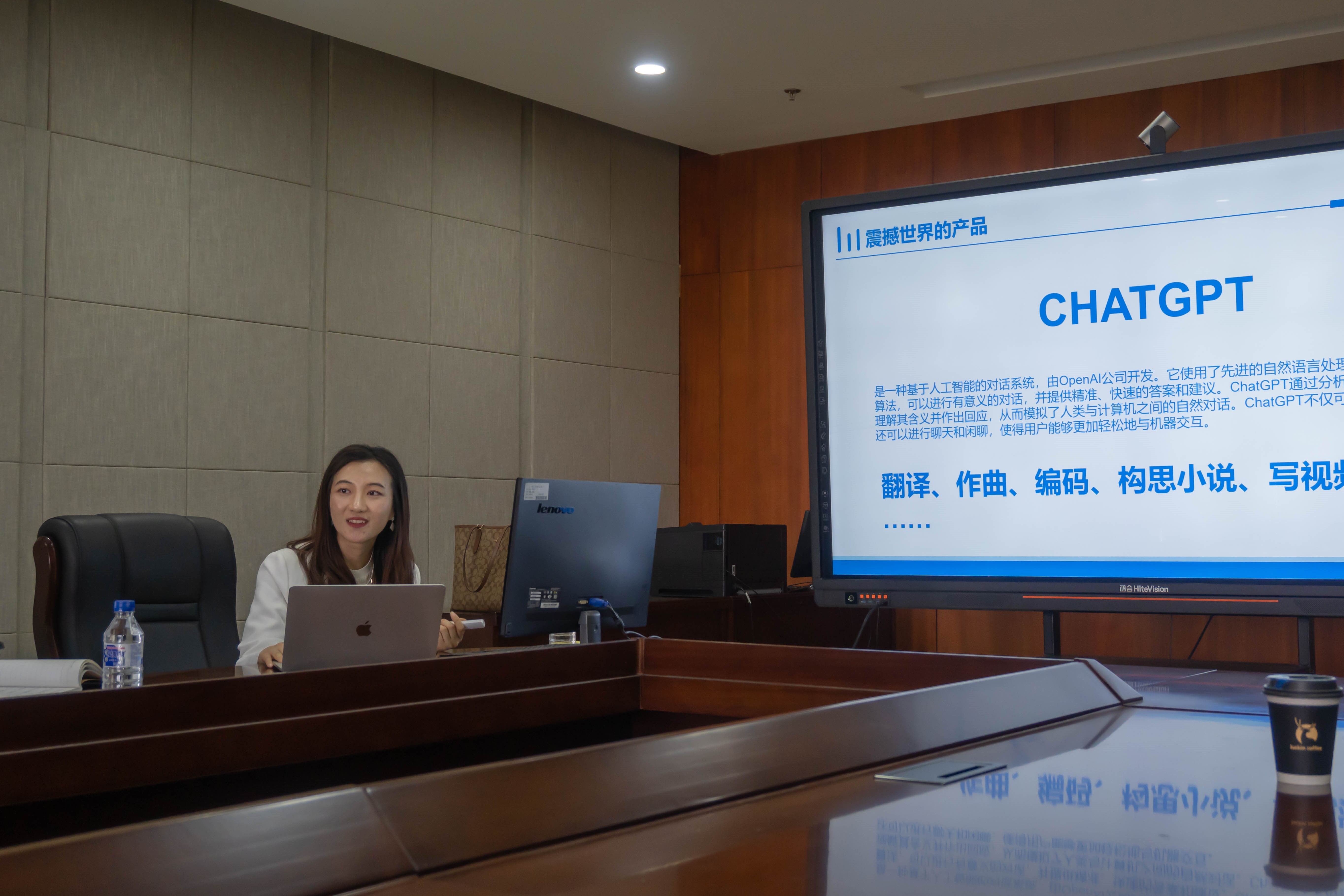 除此之外,国贺老师还对人工智能ChatGPT进行了分享与介绍。在未来,全球生产力得到指数级提升,物质极大丰富,人类精神文明将面临新一轮挑战。而面对这个问题,ChatGPT给出的答案是人类的创造力、想象力、感受力、情感和内在价值永远不会被AI所取代。