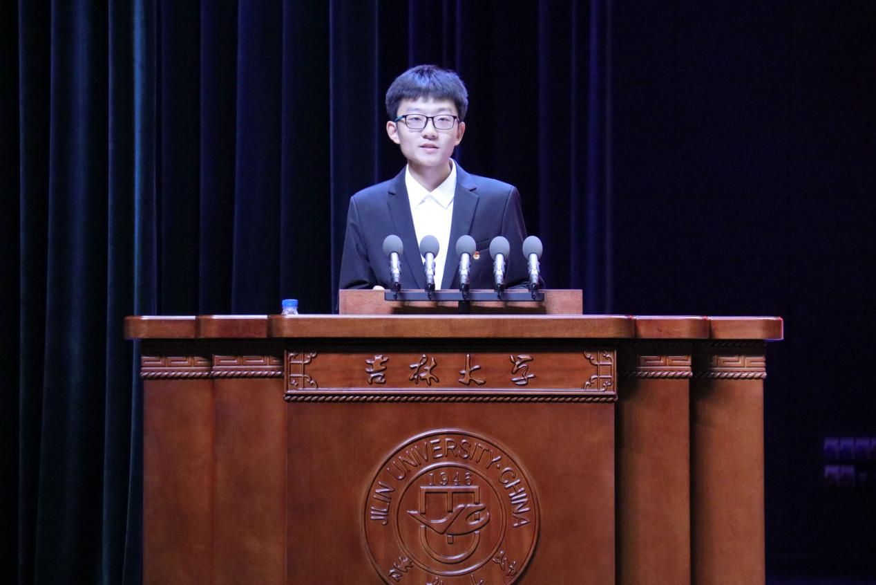 首先,学院2023级人文科学试验班索广超同学代表全体新生发言。他从童年与作为“村医”的爷爷的生活经历娓娓道来,深刻感受到爷爷对党对国的忠诚与热爱,在自己心中埋下了对红色精神向往与追寻的种子。作为年级“星火燎原·领航青春”计划中的一员,在参观吉林大学历史名人纪念馆中,从老校长匡亚明先生的“北上精神”,公木先生“以诗歌为生命”,为人民勤奋创作文艺精品的精神深受鼓舞,“春嫩但不惧寒”,从老一辈一代人有一代人的长征,索同学呼吁着广大文传学子在吉林大学这一热土上,做一个眼里有光心向党的“破格少年”在风华正茂的年纪书写青春的新篇章,让镰刀锤头碰撞生发的火花指引青春的航向。以吉林大学“求实创新,励志图强”的精神为引领,走好这一代的“长征路”。