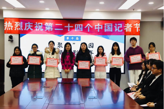 随后,刘鸣筝教授为获奖代表队颁奖,并合影留念。最后又进行了吉林大学第十届“聚焦”校园新闻摄影大赛的颁奖仪式。焦宝老师就获奖作品进行了分析与点评,让同学们对新闻摄影的选材、构图、色彩等有了更好的把握。