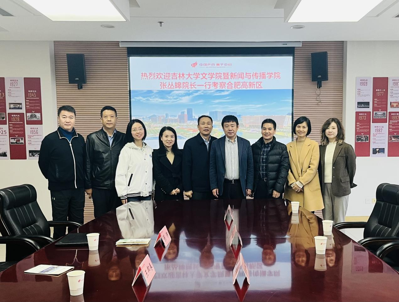 在安徽中广传播公司,总经理唐兴年就中广传播基本情况及“睛彩访谈融媒体会客厅”和“中广5G鉴证平台”工作做了介绍,表示公司在宣传策划、活动执行、播音主持这块人才很缺,欢迎吉大学生到公司进行实习实践。