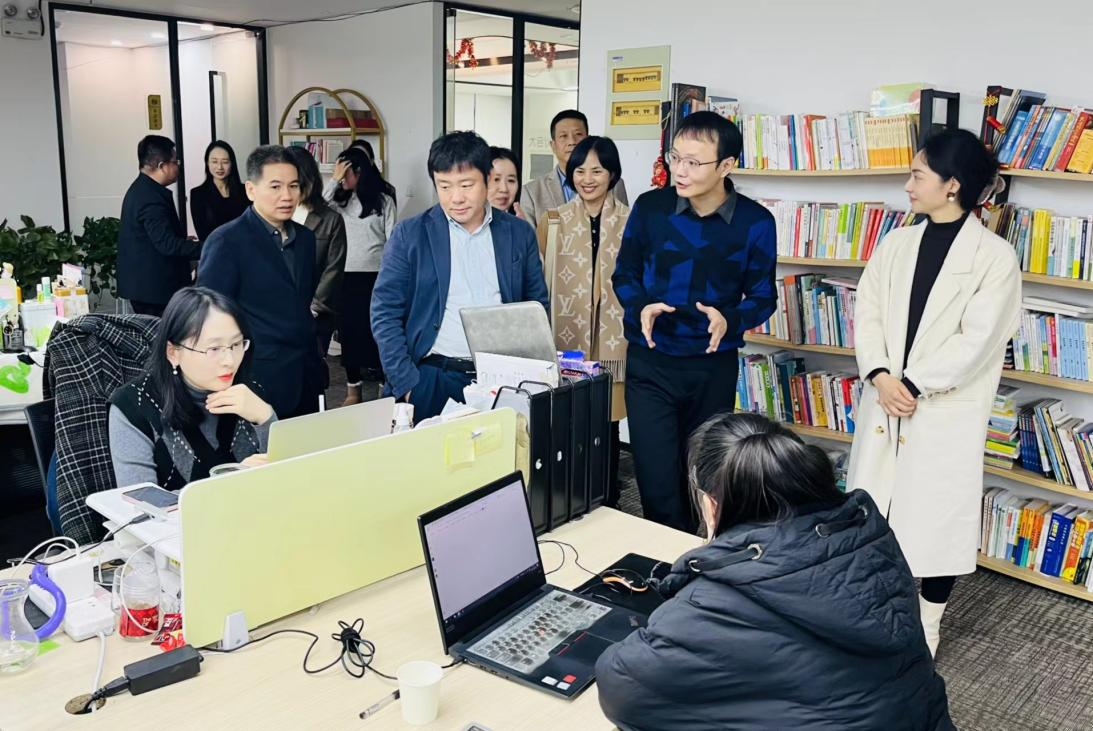 在安徽洞见科技有限公司,张丛皞院长一行与丁来峰董事长围绕校媒融合、实习实践基地合作共建、米兰(中国)一站式服务平台、新媒体传播等方面,进行了深入细致交流。