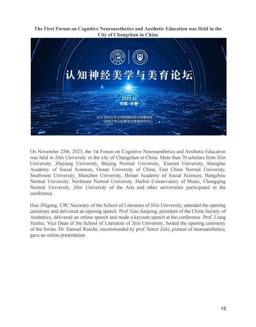 本次报道由“吉林大学认知美学与美育研究中心”为《国际美学协会通讯》(IAA Newsletter)提供英文稿件。