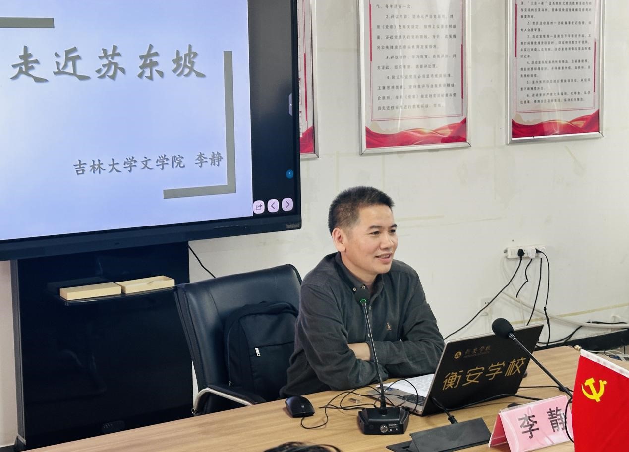 李静教授在激情洋溢的招生宣讲后,应衡安学校老师们的邀请做了“走近苏东坡”的专题讲座。精采的讲座被老师们称为“文学盛宴”,加深了对吉林大学的印象。