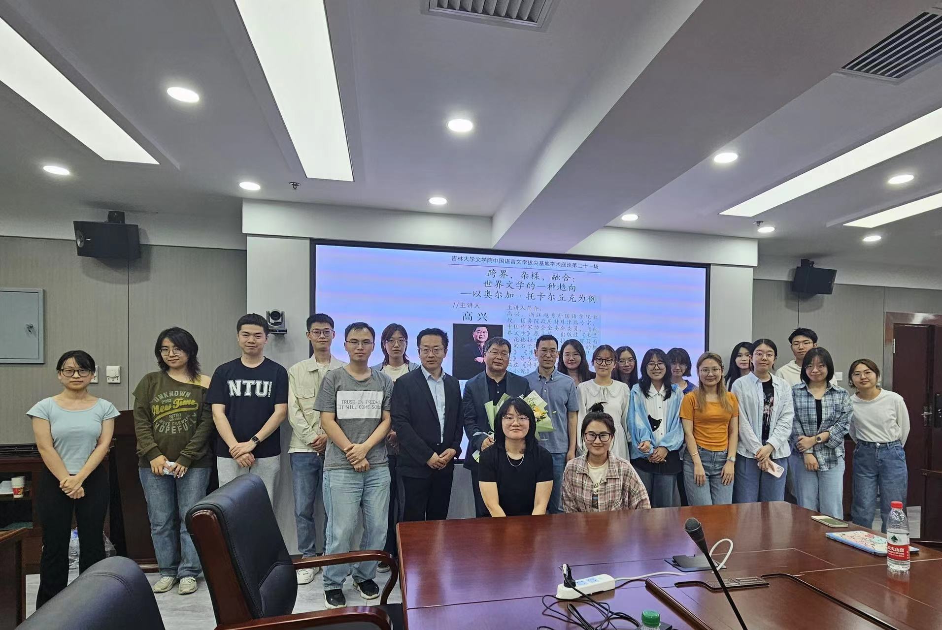 高兴教授的讲座文思泉涌、情采洋溢,为在场师生打开了世界文学的新窗口,拓宽了文学认知与理解的新边界。现场同学充分地感受到托卡尔丘克作品的魅力,积极互动,热情参与。大家认为,高兴老师的讲授,“有种不动声色的动人”,像在讲述一部名为《托卡尔丘克》的特别的小说,细腻、深刻,幽默,悲伤,肌理丰富,让人久久地回味。他像托卡尔丘克一样,作为“一个温柔的讲述者”,用灵魂去探索存在的方式,穿透了读者的内心。讲座之后,杨富波副教授及在场师生与高兴教授进行了交流。
