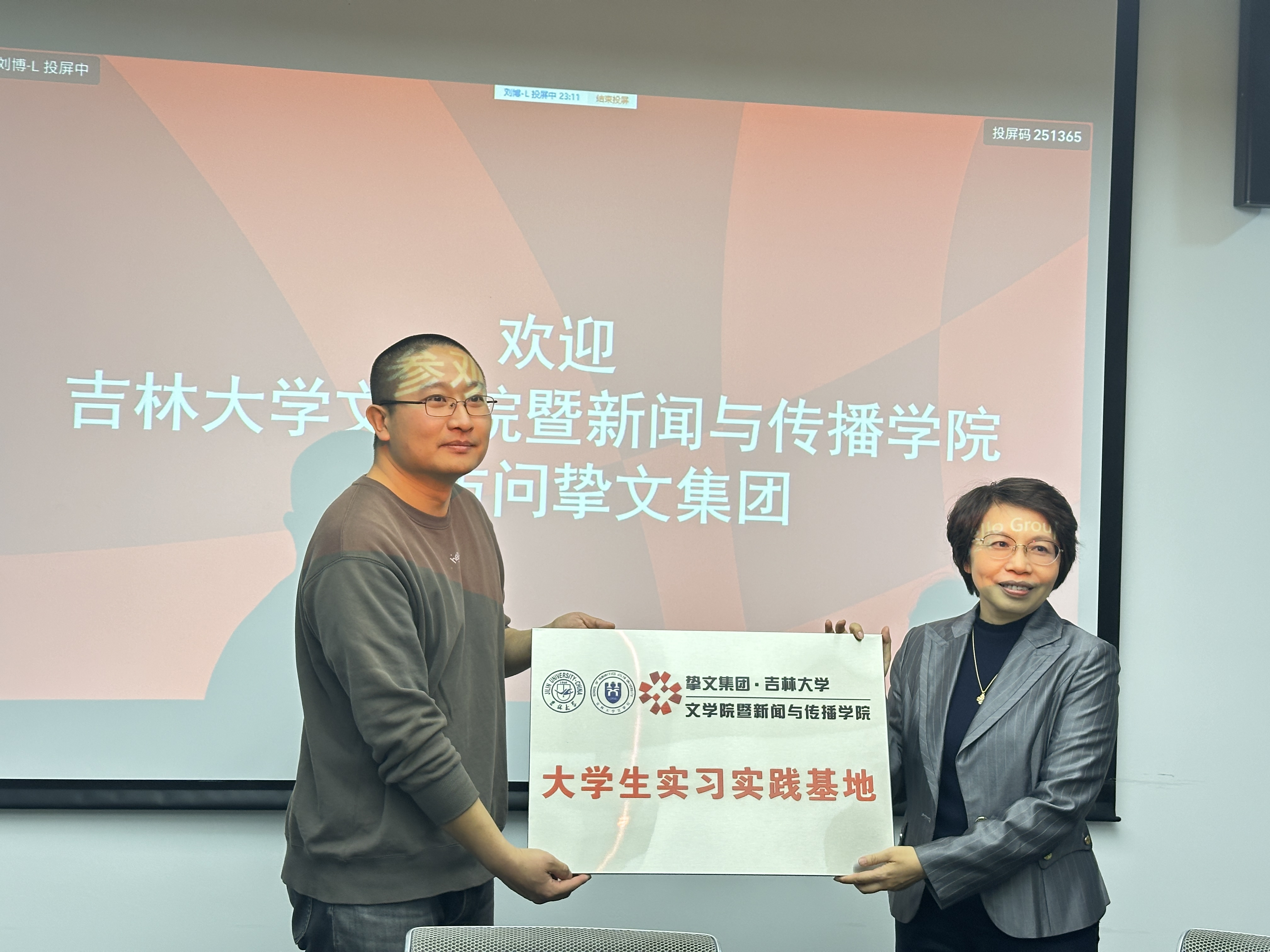座谈会上,挚文集团人力资源副总裁王小薇代表集团对吉林大学一行表示热烈欢迎,并介绍了集团的米兰(中国)一站式服务平台理念,期待通过校企联动,为文化与传播行业输送兼具理论素养与实践能力的复合型人才。公共事务副总裁朱孟乐主持会议,详细介绍了集团发展历程、业务布局及近年来的校园招聘成果。