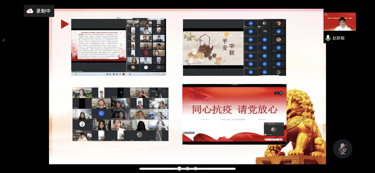 随后,2021级历史学专业团支书尹婷作了“征途漫漫,惟有奋斗”、“星火汇聚,璀璨前方”的主题发言。2021级广播电视编导专业团支书王郅祁作了“永远跟党走,奋进新征程”的主题分享。2020级人文科学试验班专业组织委员赵新毅作了“史韵明道继往圣,文质凌云展宏图”的主题演讲。2020级新闻传播学类专业团支书周思岐作了文采飞扬的主题解析。研究生第一团支部支书王月众、第三团支部支书李玲先后就对标定级工作进行了交流分享。上述六位同学的发言交流,紧扣团支部对标定级的五个维度展开,主题突出,特色鲜明,图文并茂,既看到了所在团支部取得的成绩,又发现了其存在的问题,更指出了其前进的方向。