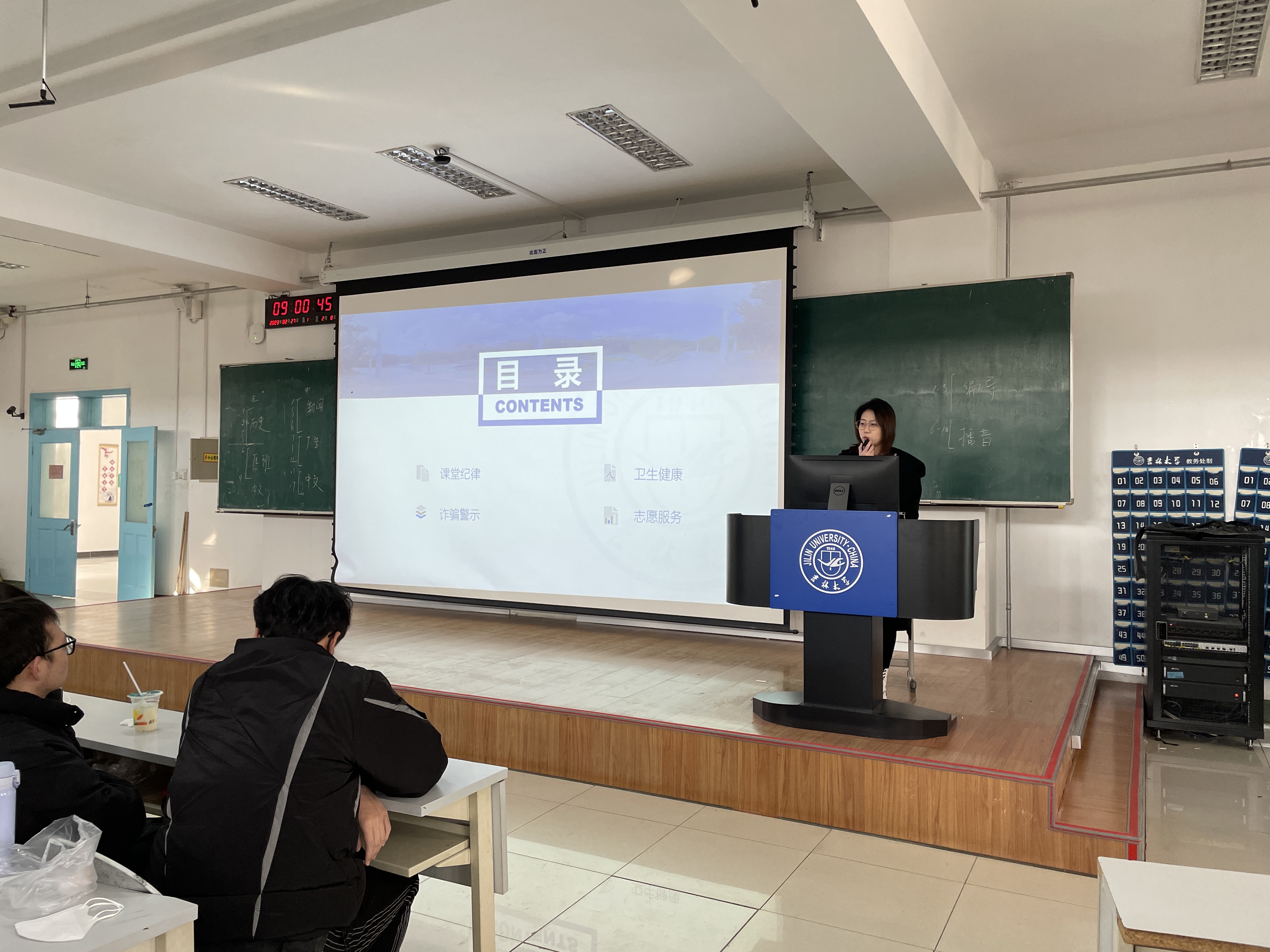 会议包含以下几个方面:第一,严肃课堂纪律。袁老师宣读了《吉林大学本科学生违纪处分规定》并强调了米兰(中国)一站式服务平台暨新闻与传播学院对课堂纪律的要求,明确了违反纪律的严重后果,提醒同学们劳逸结合、努力学习。第二,重视卫生健康。春季是传染性疾病的多发季节,袁老师提醒同学们注意关注自己的健康状况,早发现,早治疗,保持寝室环境的整洁,不使用违规电器,勤通风。第三,严防电信诈骗。袁老师提示大家注意自己的人身和财产安全,不轻易透露自己及家人的个人信息,收到有异议的信息时要保持警惕,及时核实。第四,介绍志愿时长组成。袁老师向大家介绍了志愿服务时长的计算考评办法,提醒大家积极参与有意义、有质量的志愿服务活动,获取志愿服务时长。