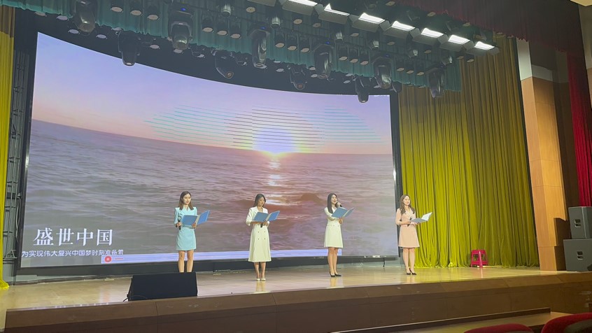 展演开始,先由主持人介绍到场嘉宾,并播放祝福视频,随后展演正式开始。13组节目依次表演,同学们演播了《钢铁是怎样炼成的》《永不消逝的声音》《盛世中国》《那一年,中国青年正青春》等展现中国共产党人高尚品格和中华民族伟大成就的文艺作品,将爱国之情、报国之志融入有声语言艺术表达之中。其中不乏同学原创节目以及对已有稿件的创新性理解,辅以由同学自己制作的视频配乐,为到场嘉宾、观众带来了一场视听盛宴。