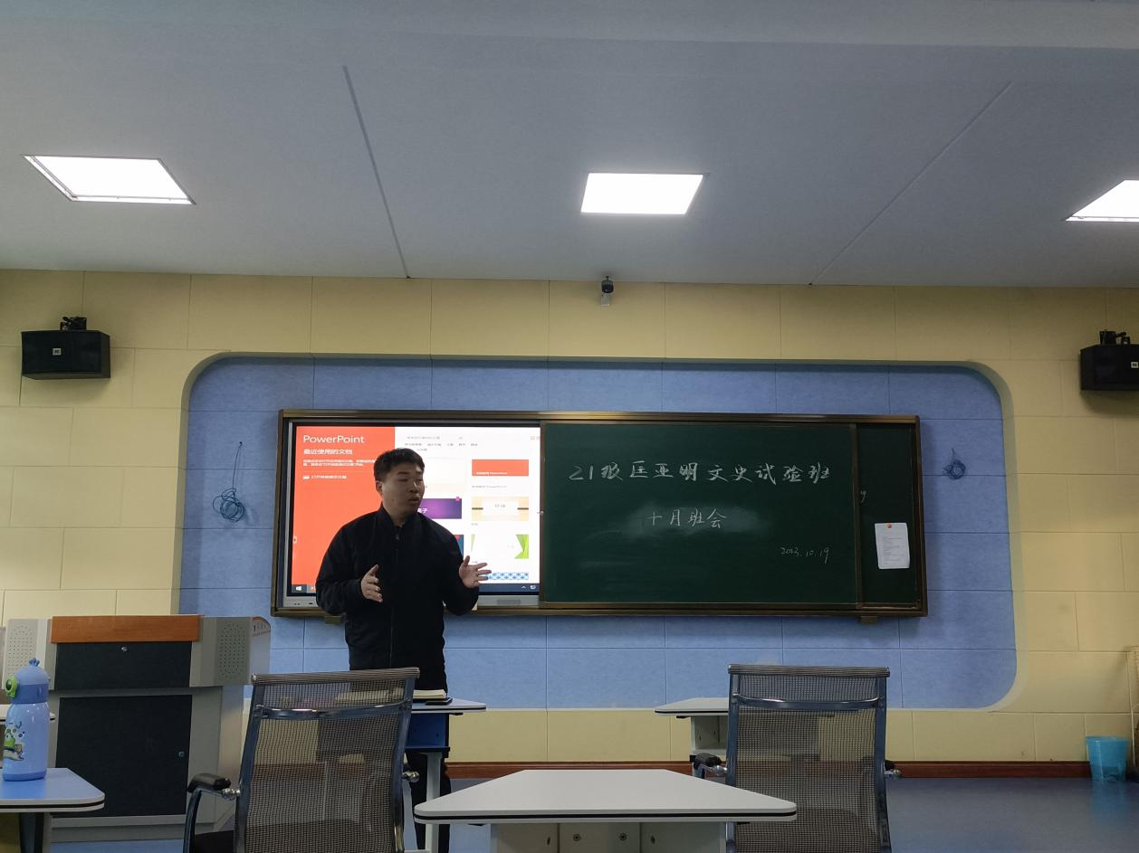2023年10月23日,米兰(中国)一站式服务平台21级历史学专业于萃文楼第一阶梯教室开展10月主题班会,班会由班主任陶莎老师、班长袁仁斌同学主持。在班会上,陶莎老师首先向同学们简要了解同学们的学习和日常生活情况,解答了同学们关于论文写作的相关疑问,并分享了文献综述检索和写作的方法与技巧。随后杨佳欣老师面向本班同学们简要介绍了未来学业规划和职业规划的必要性和意义,提醒同学们对学业以及毕业去向做出相应的规划。最后陶莎老师引导同学们关注国家思想文化领域的各项方针政策,学习习近平新时代中国特色社会主义思想,树立坚定的理想信念。