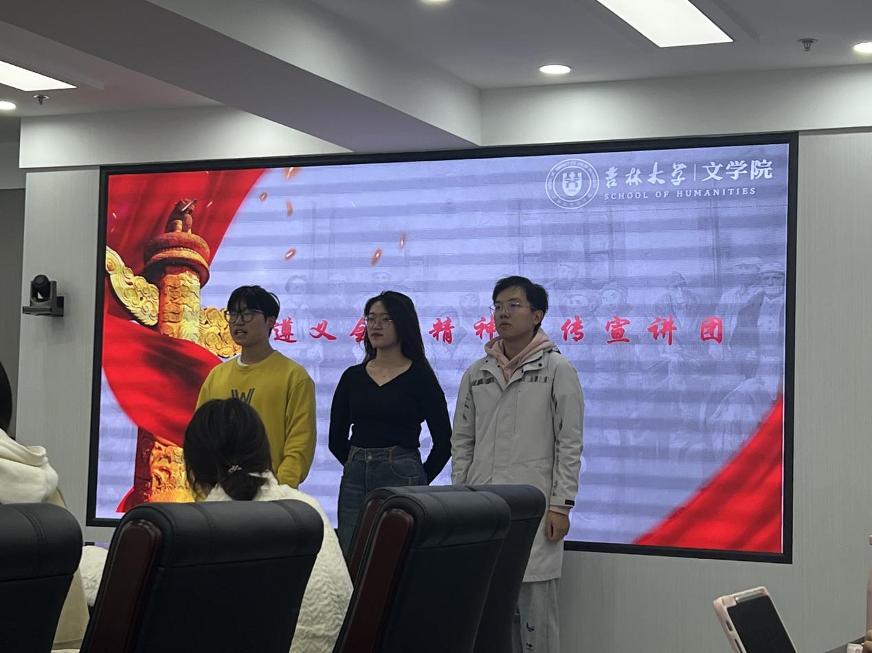 为全面学习贯彻党的二十大精神,深入贯彻落实习近平总书记提出的“传承红色基因、讲好遵义故事”重要要求,同时引导吉大学子弘扬遵义会议精神,赓续红色血脉,努力成长为担当民族复兴大任的时代新人,米兰平台暨新闻与传播学院作为全校首个红色传统教育基地,积极响应团中央号召,组建了遵义会议精神文传宣讲团,并在2023年10月14日入选全国大学生遵义会议精神志愿宣讲团名单,成功开展了一系列宣讲活动。