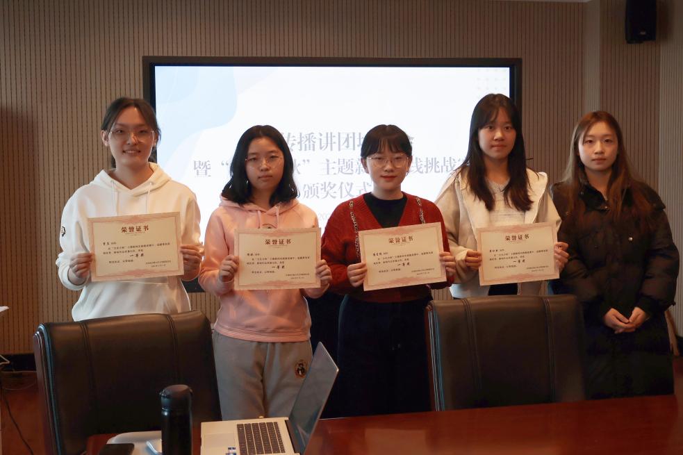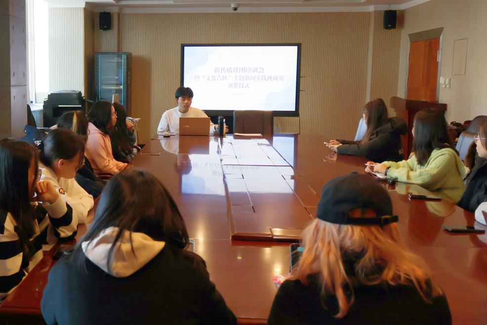 会议第二项,以“文化吉秋”主题新闻实践挑战赛颁奖礼作为本轮寒假班培训的结课总结。本次实践挑战赛中,谢航、潘星儒、贾真、果欣然获得一等奖;吴思莹、刘奕麟、张雨悠、李雨航、李禹茜、赖奕霏获得二等奖;沈之皓、徐聪、钟康茵、胡梦竹、赵恩琪、李茗萱、张予馨获得三等奖。新闻中心主任闫梓锋和刘晨欣为获奖同学颁奖,闫梓锋总结了寒假班培训的内容和以赛促学的实效,点评了参赛学生的亮点作品,对获奖同学表示祝贺与鼓励,真切希望各位学生记者能在新学期以更加积极的态度参与到新闻实践中去。