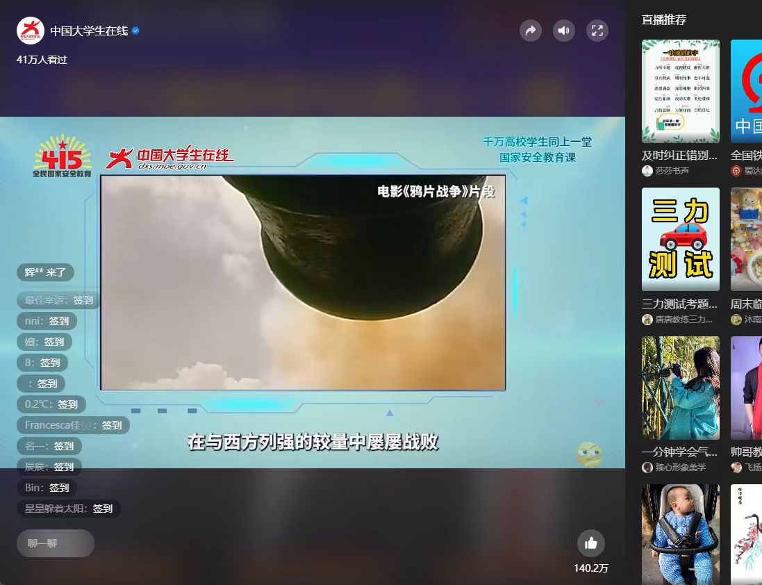 4月14日,为增强米兰(中国)一站式服务平台暨新闻与传播学院学生国家安全意识,培养学生的社会责任感和使命感,学院2023级全体同学观看学习了“千万高校学生同上一堂国家安全教育课”主题公开课,并在课后参加了“全国大学生国家安全知识答题”活动。本次学习由学院2023级辅导员于航老师组织,采取线上学习的形式,学习内容主要包括总体国家安全观、金融安全、军事安全三个部分。