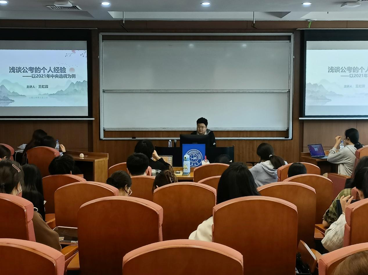 为进一步拓宽文传学子的职业发展视野,提升核心竞争力,以实现更高质量更充分的就业,我院于2024年6月2日下午两点三十分在逸夫楼第六阶梯教室成功举办了2025公考经验分享会,此次会议邀请了优秀校友王虹霖作为主讲嘉宾,为我院学生带来了关于考公选调考试的宝贵经验和心得体会。辅导员李芊满、杨佳欣参加会议。