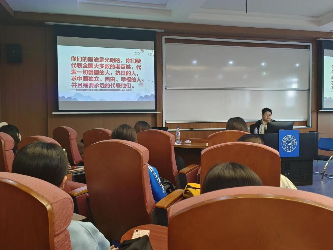 分享会上,王虹霖以自身参加中央选调的亲身经历为切入点,从报名、备考、考察等各个环节进行了详尽而深入的剖析。他结合个人经历,为同学们提供了一系列实用建议,帮助大家更好地了解选调备考的方案,以增强同学们应对此类考试的信心,提高个人能力。在深入讨论个人的职业规划和长远愿景时,王虹霖巧提到,“雄关漫道真如铁,而今迈步从头越”,大家要对自己的理想有坚定信念和执着追求。他强调,从校园走向社会,从“人人为我”到“我为人人”,是每个青年学子必须经历的成长过程。他也表示,“为人民服务”不仅是自己对这份工作的深刻理解,更是他将用一生去践行的神圣使命和职业追求。最后,王虹霖借用了毛泽东同志1939年5月30日在延安庆贺模范青年大会上的讲话与文传学子共勉,要时时提醒自己,牢记肩上使命。