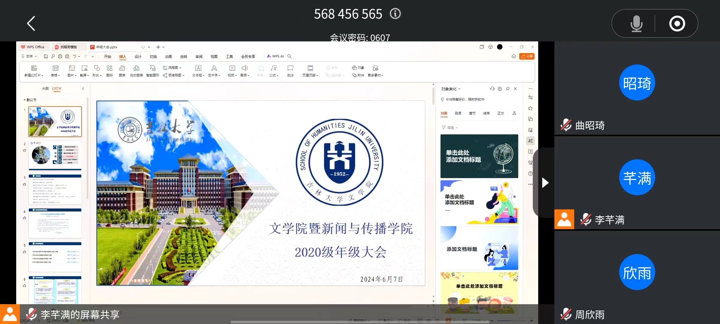 2024年6月7日、6月17日,米兰(中国)一站式服务平台暨新闻与传播学院2020级本科生召开两次毕业季年级大会,年级辅导员李芊满老师主持会议,兼职辅导员曲昭琦和全体学生参会。