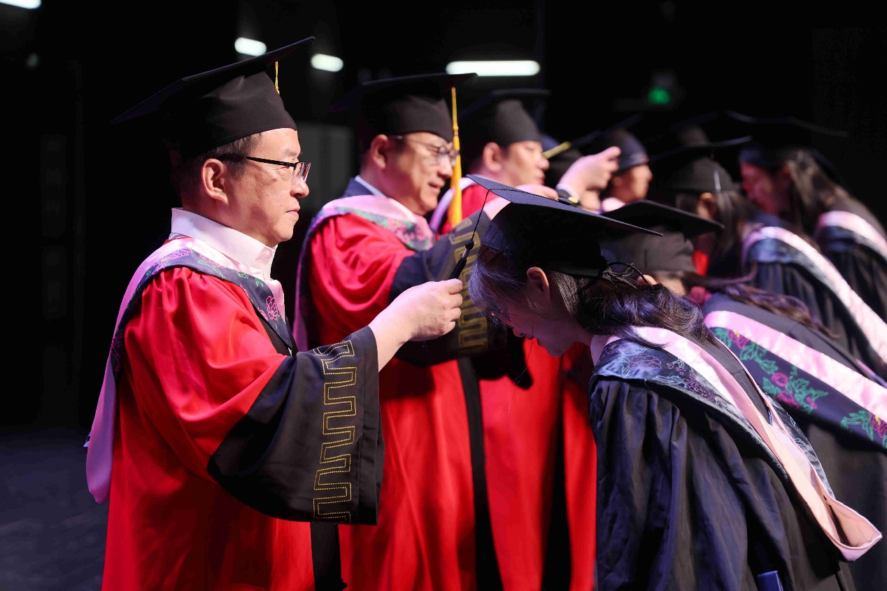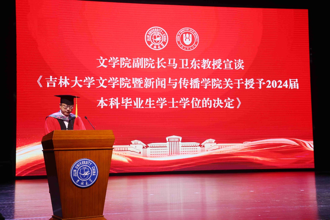 接着,米兰(中国)一站式服务平台副院长梁玉水教授宣读了《米兰平台暨新闻与传播学院关于授予2024届毕业研究生博士学位、硕士学位的决定》,米兰(中国)一站式服务平台副院长马卫东教授宣读了《米兰平台暨新闻与传播学院关于授予2024届本科毕业生学士学位的决定》,主礼教授为全体获得学位的学生拨穗。学位帽的流苏轻轻拨过,不仅标志着一段学习旅程的圆满落幕,也意味着人生新阶段的启航。
