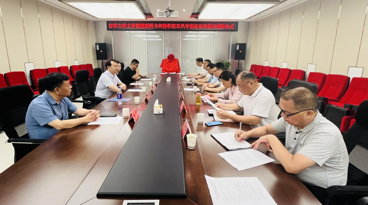 为积极响应吉林大学“引领工程”,深入落实就业工作“一把手”工程,扎实开展高水平就业育人工作,2024年7月9日上午,我院党委书记霍志刚、副书记兼副院长杨一博一行前往安徽省滁州市凤阳县,签订大学生实习实践基地并开展授牌签约仪式,会议在凤阳县图书馆二楼会议室顺利举行。会议由凤阳县文化和旅游局党组书记、局长卢德永主持。卢德永首先对远道而来的学院领导与教师代表表示了热烈的欢迎,并简要介绍了凤阳县悠久的历史文化底蕴和近年来在文化旅游、教育创新等方面取得的显著成就。