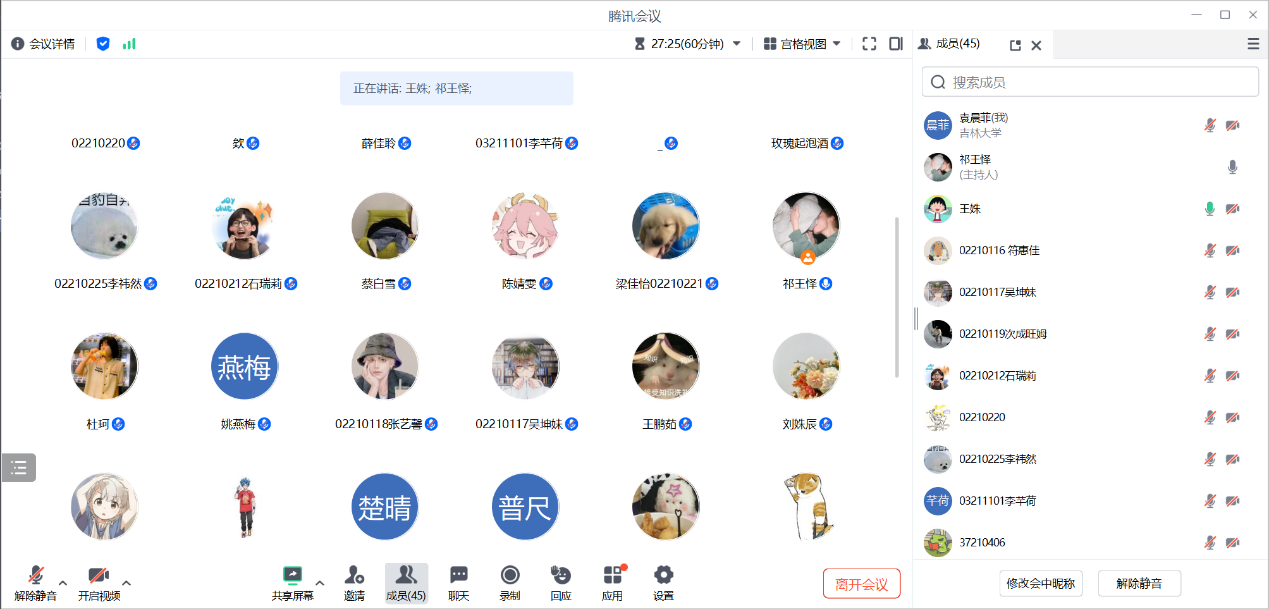 11月30日上午10时30分,2021级新闻学专业召开了11月班会活动。班主任张斯琦老师和全体同学准时入会,班长郭宇轩主持会议。首先,郭宇轩提醒同学们考研已经进入最后的冲刺阶段,希望大家放平心态,坚持给予自己积极的心理暗示。同时,行动是最重要的,与其胡思乱想制造焦虑,不如采取实际行动,要学会不去为没发生的结果担心。同时,也不要盲目攀比,每个人的学习方法和学习进度不同,保持自身节奏才是关键。其次,已近深冬,天气寒冷,希望大家注意保暖,预防疾病。不管同学们处于宿舍还是家中,都要时刻注意消防安全,杜绝违规电器,保护消防设施关注寝室防火安全。最后,张老师提醒同学们在学习的同时不要忘记适当运动保持健康,合理的运动量可以强身健体,激发活力,调节学习状态。在考研学习中,不仅要重视知识的积累,也要提前模拟答题过程,合理分配答题时间,保持卷面整洁。张老师还希望每一位同学需要时能积极和老师沟通,以乐观的心态面向未来的生活,并预祝同学们获得满意的毕业去向。