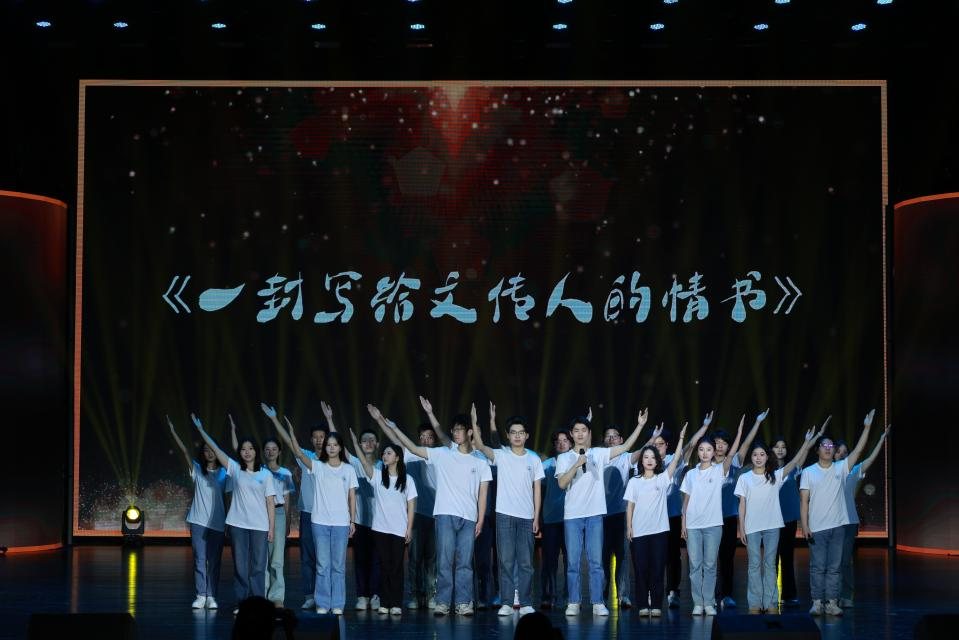 最后,在振奋人心的校歌和现场师生热烈的鼓掌声中,晚会圆满结束。本场晚会由学院师生团队精心设计,为观众呈现了一场精彩的演出。青春正年少,奋斗正当时。未来,文传学子将更加踔厉奋进,继续传递属于我们的“文韵新声”。