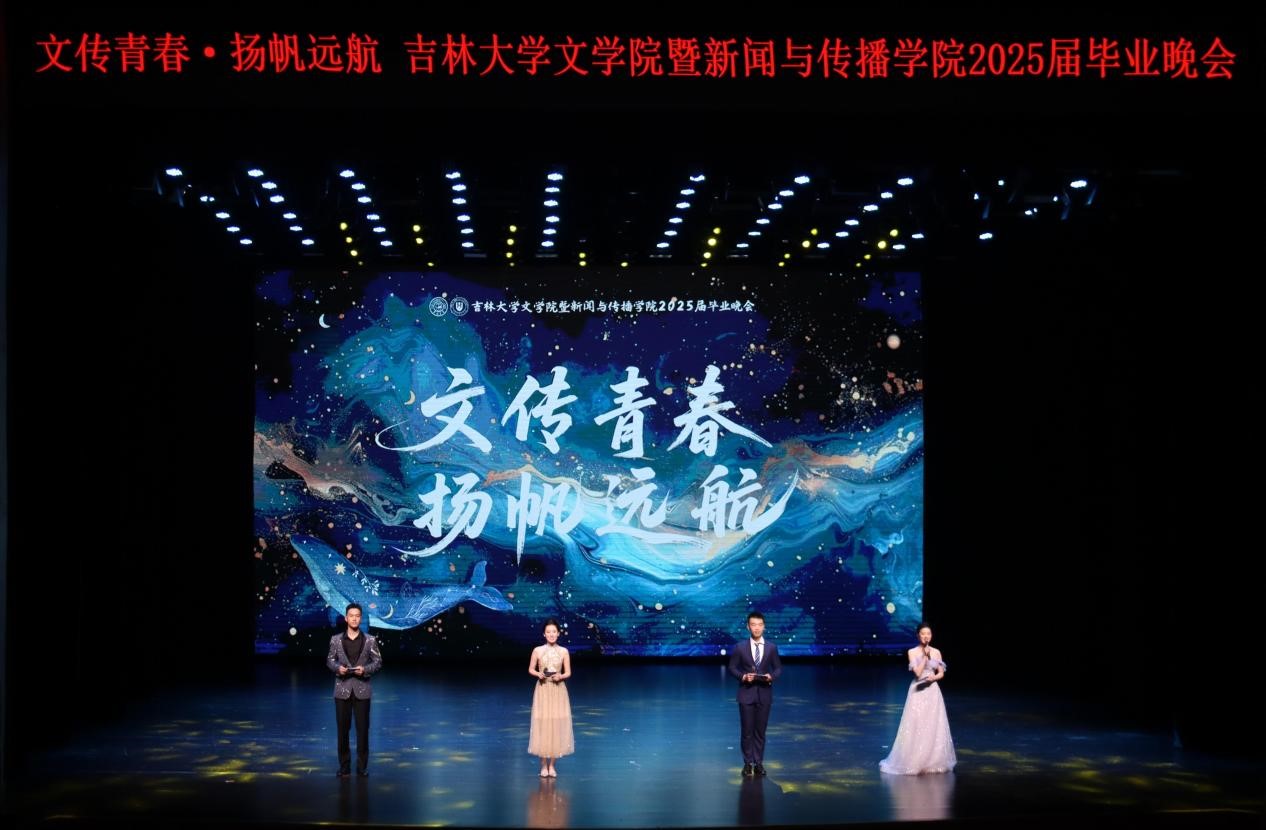 晚会的第一篇章以“文传青春”为主题。精彩纷呈的节目轮番上演。深情的独唱诉说着学子心声,动人的独舞展现着青春律动,毕业生们带来的合唱饱含同窗情谊,经典旋律的歌曲串烧点燃了全场热情,将大学期间的欢笑与泪水、奋斗与成长娓娓道来,一帧帧闪过的校园记忆深深触动着在场每一位师生的心弦。晚会的第二篇章以“扬帆远航”为主题,毕业生们通过多元的艺术形式展望未来。构思精巧的原创话剧表演引人入胜,或幽默诙谐,或发人深省。充满力量的合唱激荡着青春向上的澎湃活力,动感十足的舞蹈串烧展现了学子们的蓬勃朝气与创造力。大屏幕上播放的毕业留念视频,映出同学们熟悉的校园场景,一幕幕从入学以来的过往的经历,一张张洋溢着青春的笑脸,瞬间唤起无数珍贵回忆。
