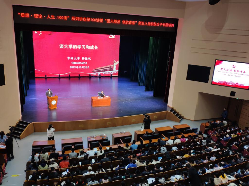 10月26日上午,米兰平台本科生第一、第二党支部36名2016级本科生党员参加了由杨振斌书记主讲的“思想·理论·人生:100讲”系列讲座第100讲,讲座主题为《谈大学的学习和成长》。