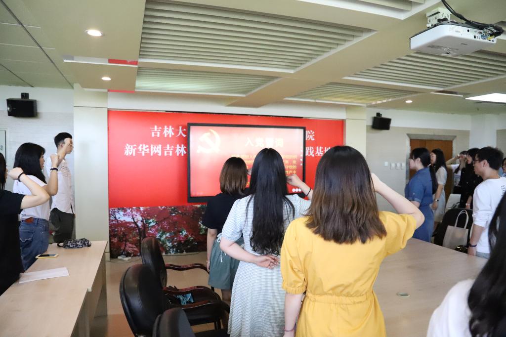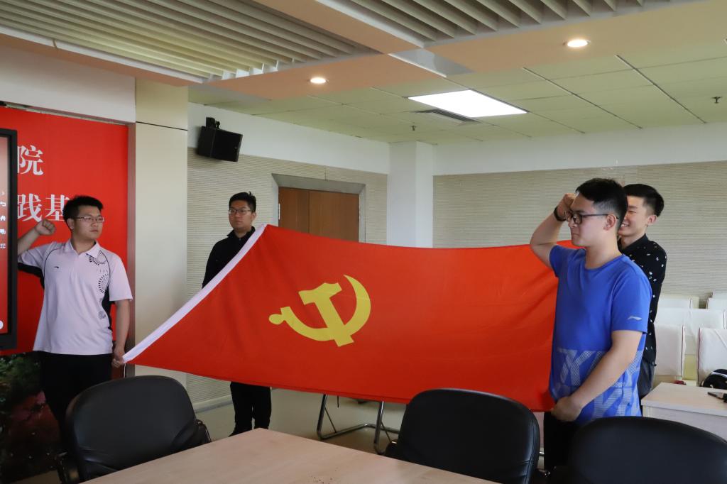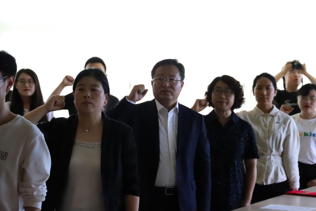 2019年6月20日,米兰平台2019届毕业学生党员于东荣十楼会议室集体重温入党誓词,参加活动的老师有米兰平台党委书记康永刚、党委副书记郝淑媛、党委副书记刘卓、学生工作办公室主任杨一博,领誓人为米兰平台2015级本科生第二党支部中共党员田济世。
