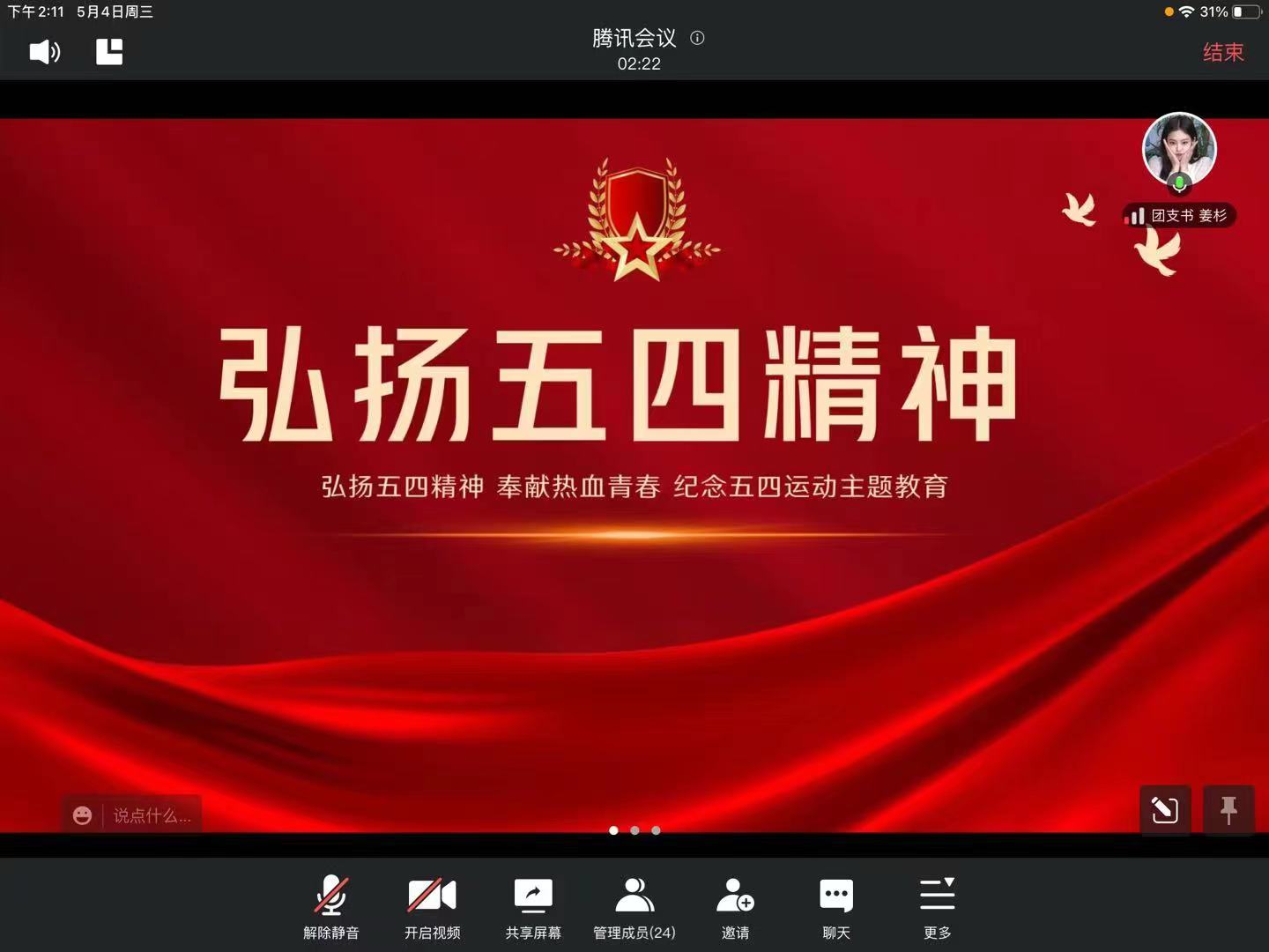 (硕士研究生第五党支部及第十二党支部线上学习习近平主席五四讲话精神)