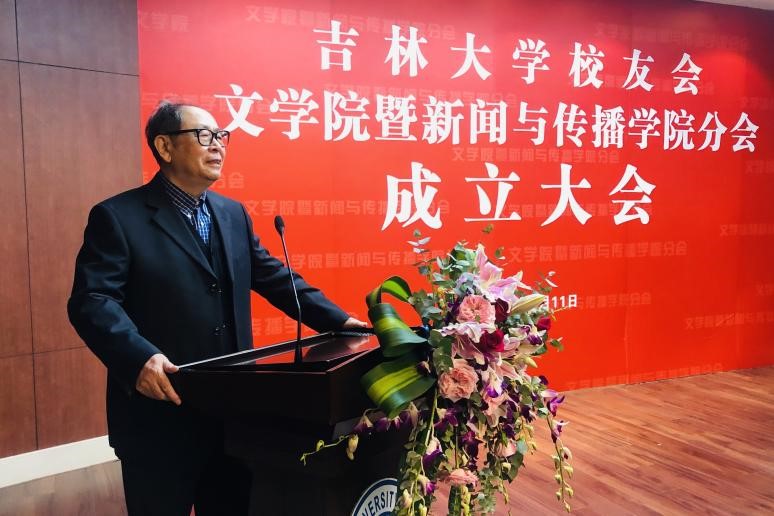 会上,吉林大学哲学社会科学资深教授刘中树发表讲话,向校友分会的成立表示祝贺。刘中树先生回忆了自己刚来到吉林大学时的画面,回忆了与在场师生初次相见的场景,提到学院是亲情永在、友谊长存的温暖家庭,是为党育人、为国育才的神圣摇篮,个人的命运和学院、学校的命运、国家的命运也紧紧融合在一起,相依为命。