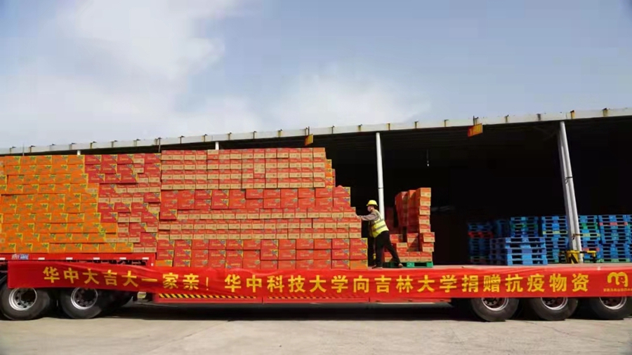 自吉林疫情形势严峻以来,华中科技大学师生一直牵挂着我校师生的抗疫工作、封校生活。3月28日,华中科技大学筹集500万防疫和生活物资,带着全校师生的美好祝愿,一路向北,来到吉大学子身边。华中科技大学党委书记、吉林大学原校长李元元与华中科技大学校长尤政在慰问信中深切表达了两校之间的“袍泽之情”:“‘华中科大与吉大一家亲’,我们亲历曾经的艰难,更知如今你们的不易……全体华中科大人都希望为吉林大学抗‘疫’之战尽自己的绵薄之力。”犹记得,2020年初,吉林大学三家附属医院的500余名白医传人奔赴武汉,与华中科技大学医务人员一道,书写了新时代的抗疫英雄故事。今天,从荆楚江城到北国春城,一批批物资,一句句问候,再次将两校的心紧紧连在了一起。