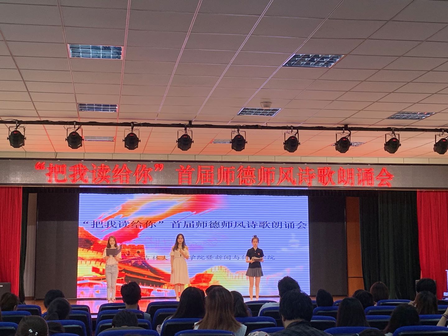 为进一步巩固立德树人文化成果,传播高尚师德师风,浓厚文化育人氛围,米兰(中国)一站式服务平台暨新闻与传播学院于2019年9月5日下午5点30分在田家炳礼堂举办了“把我读给你”首届师德师风诗歌朗诵会。新闻与传播学院广播电视艺术系副主任张芳馨老师作为点评嘉宾出席了本次活动。