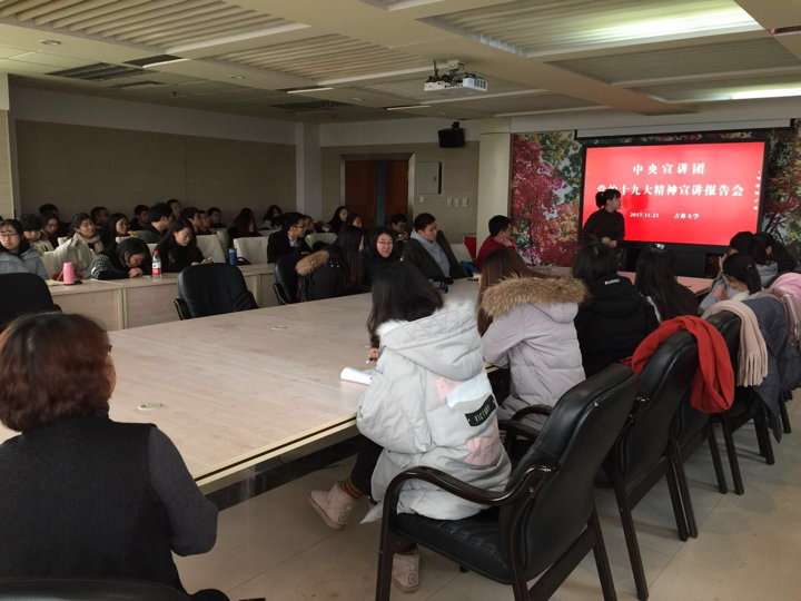 [记者:郗琳]12月8日,米兰平台研究生党总支为深入贯彻党的十九大精神,进一步提升党员对十九大精神的领悟,我院于东荣十楼会议室举行中央宣讲团党的十九大精神宣讲报告会视频观看,组织全体党员预备党员以及入党积极分子观看视频,米兰(中国)一站式服务平台党委副书记郝淑媛主持本次讲座。
